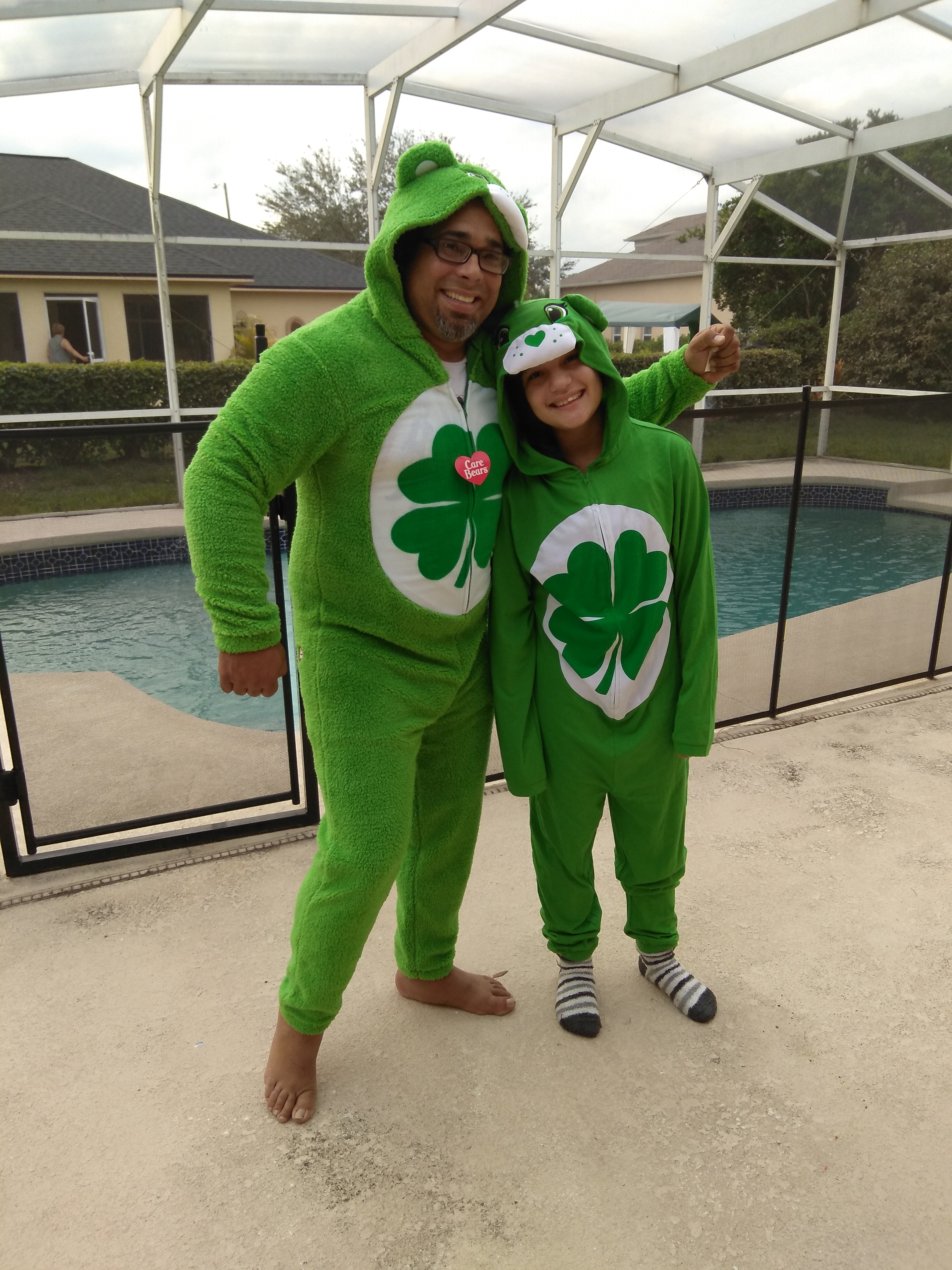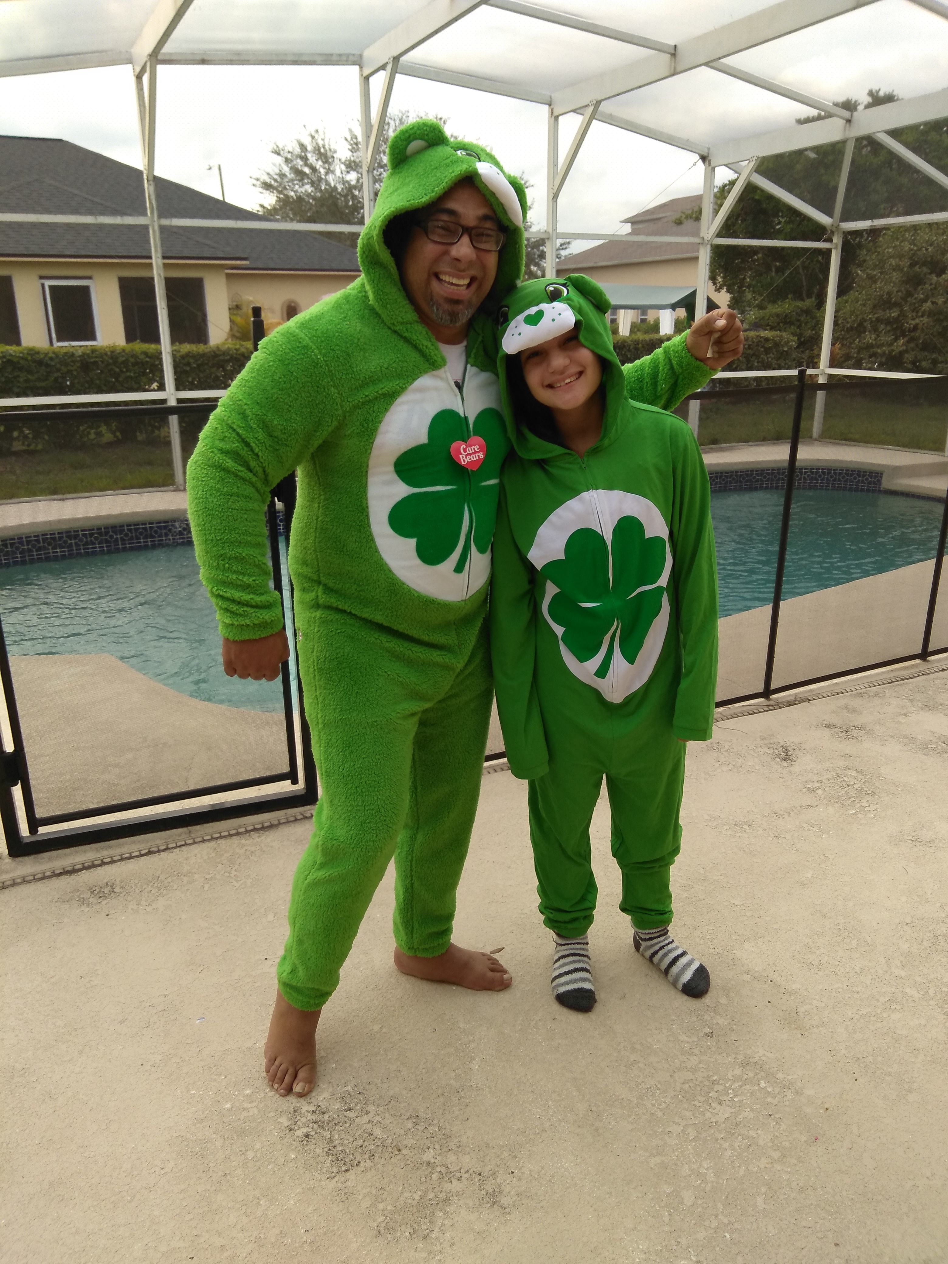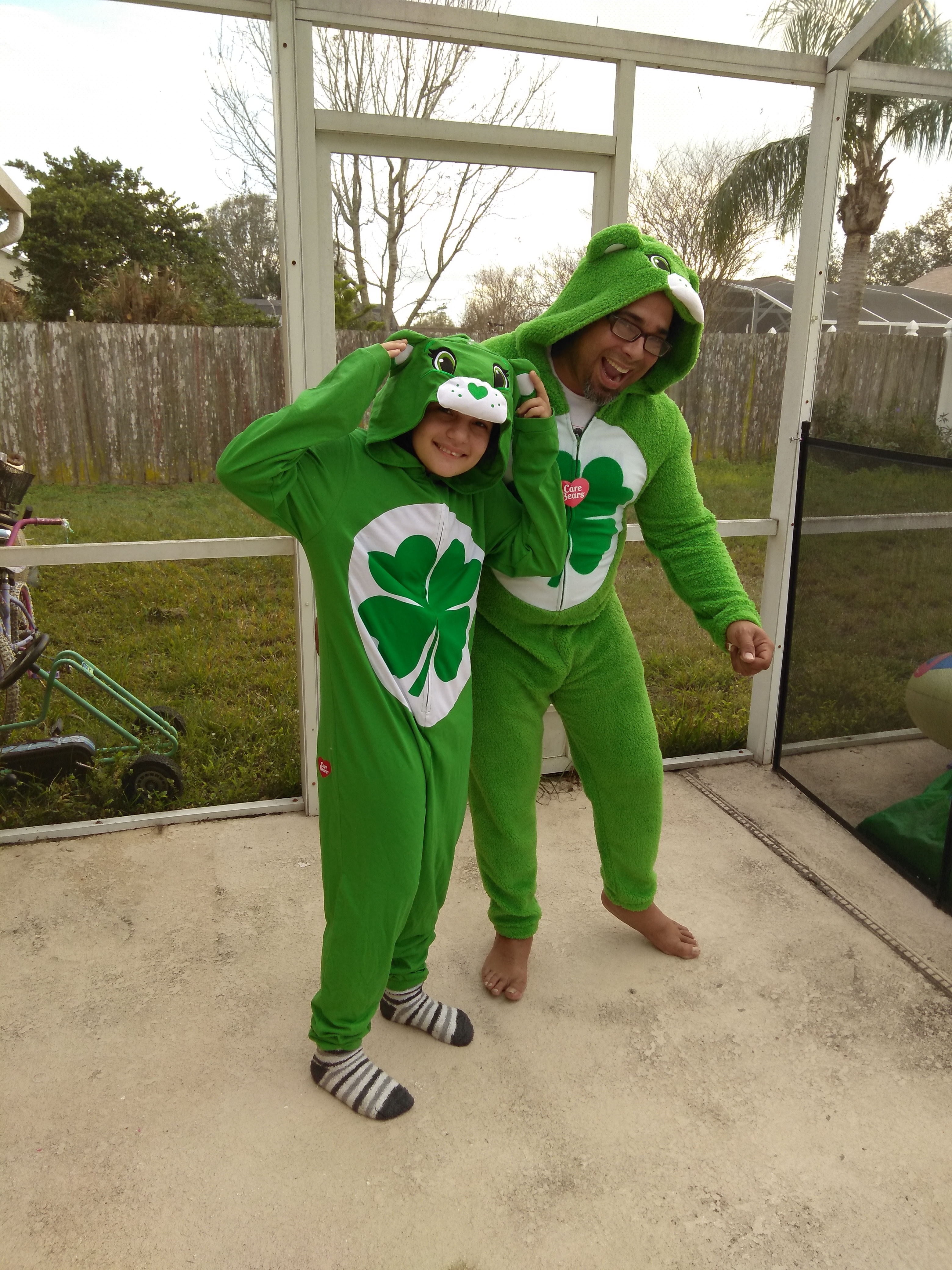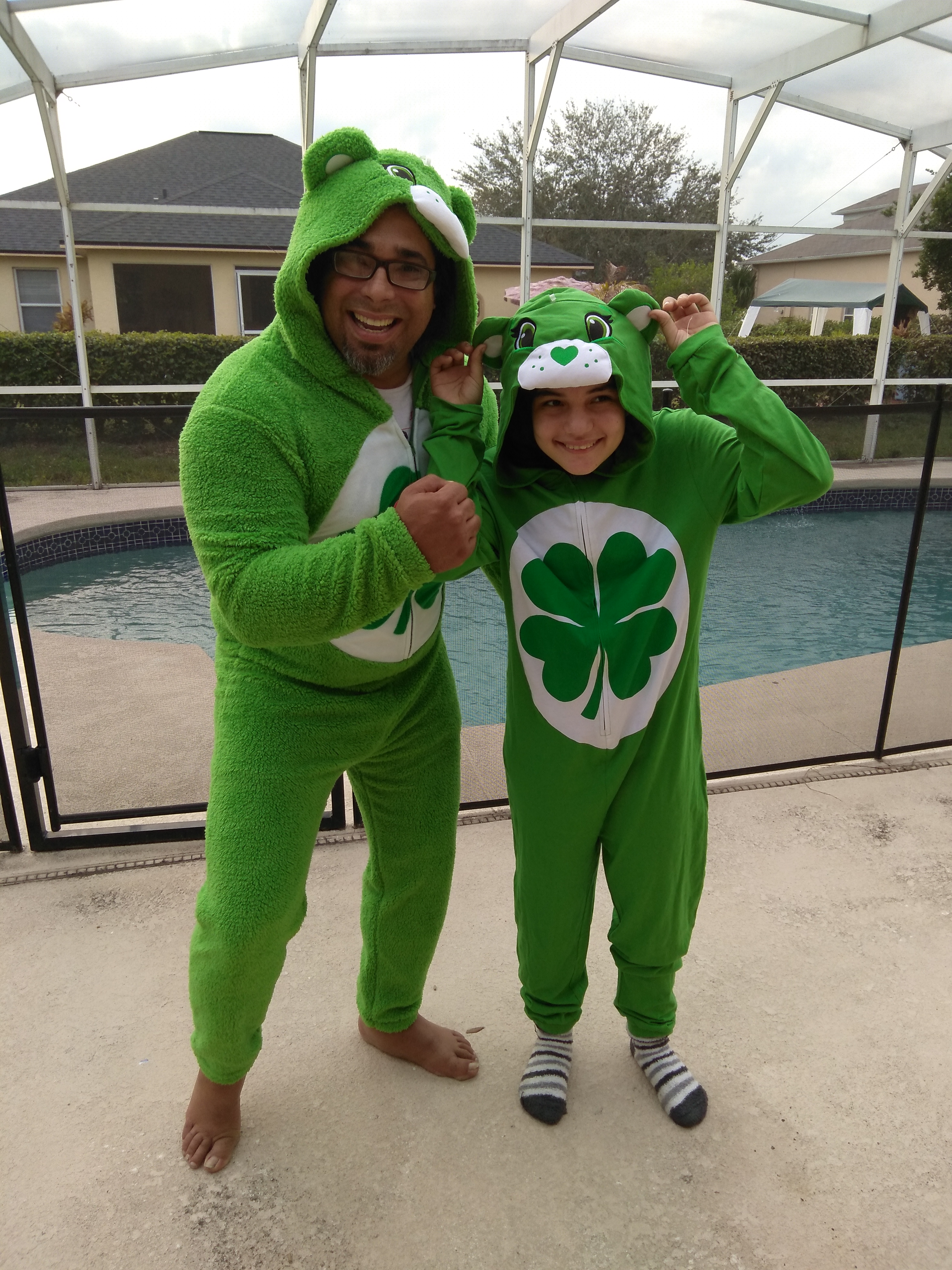 This fun Union Suits have become family favorites , The pictures show two different kinds, one is a fleece fluffy union suit and the other one is cotton, these are Men (dad) size but teenage girl and mom can wear it too!! The fun wearing this as a family brought great memories and St Patrick’s day will be a special one wearing something definitively out of he ordinary, it is a conversation piece to start any party for sure and so comfy it can be worn all year round too !