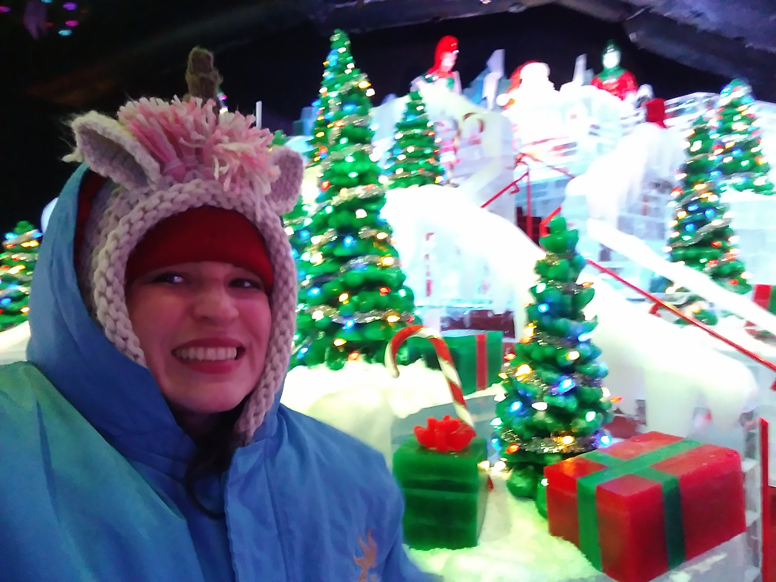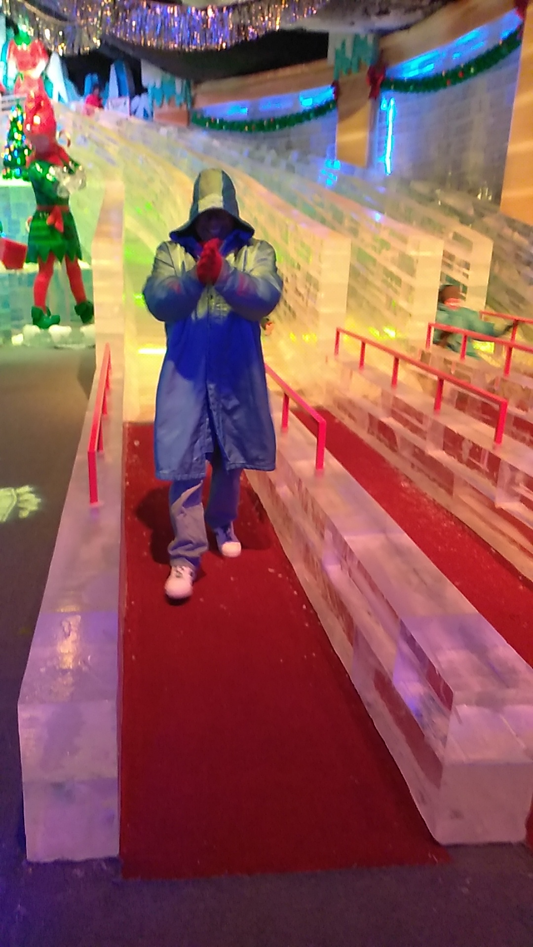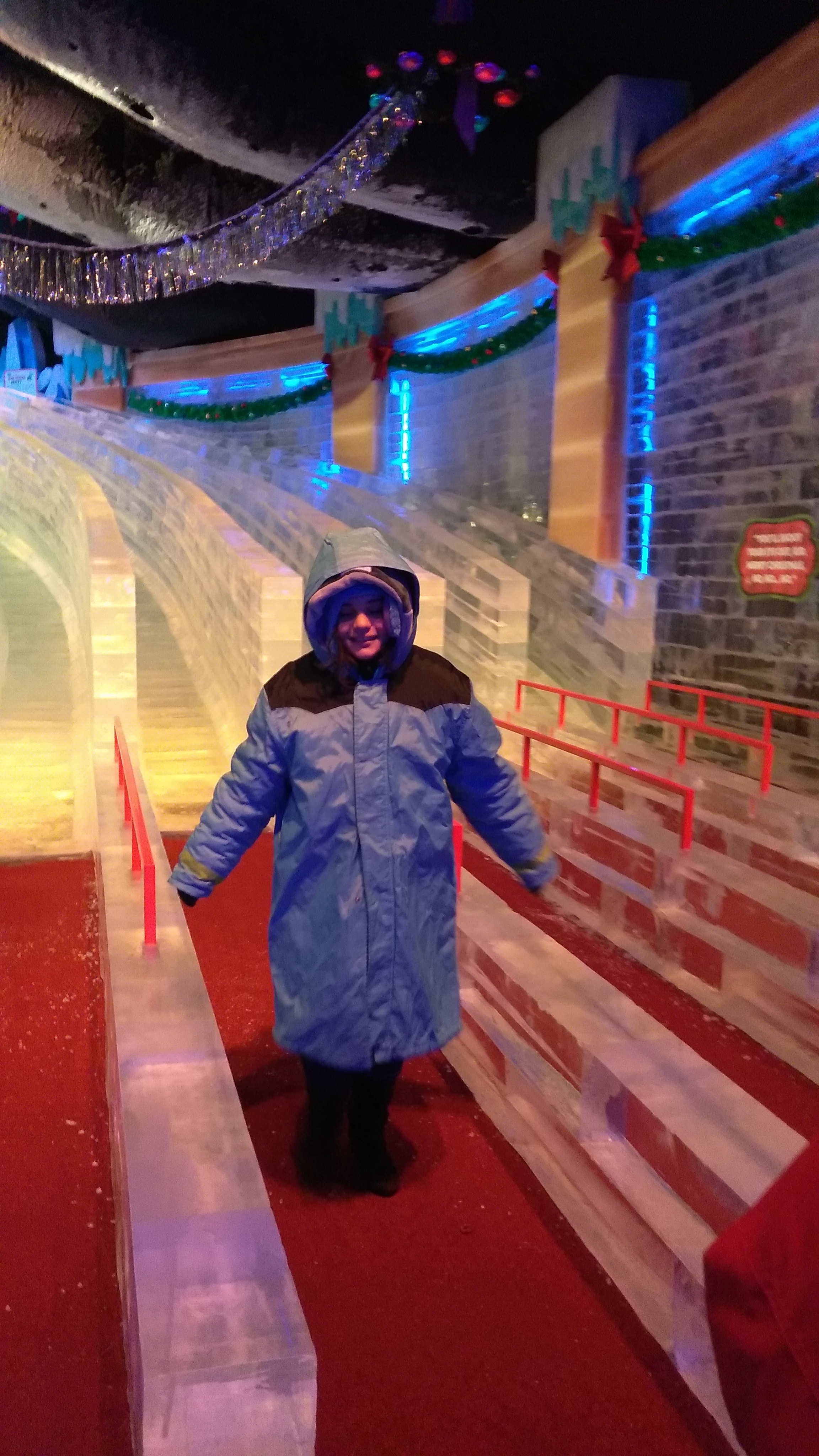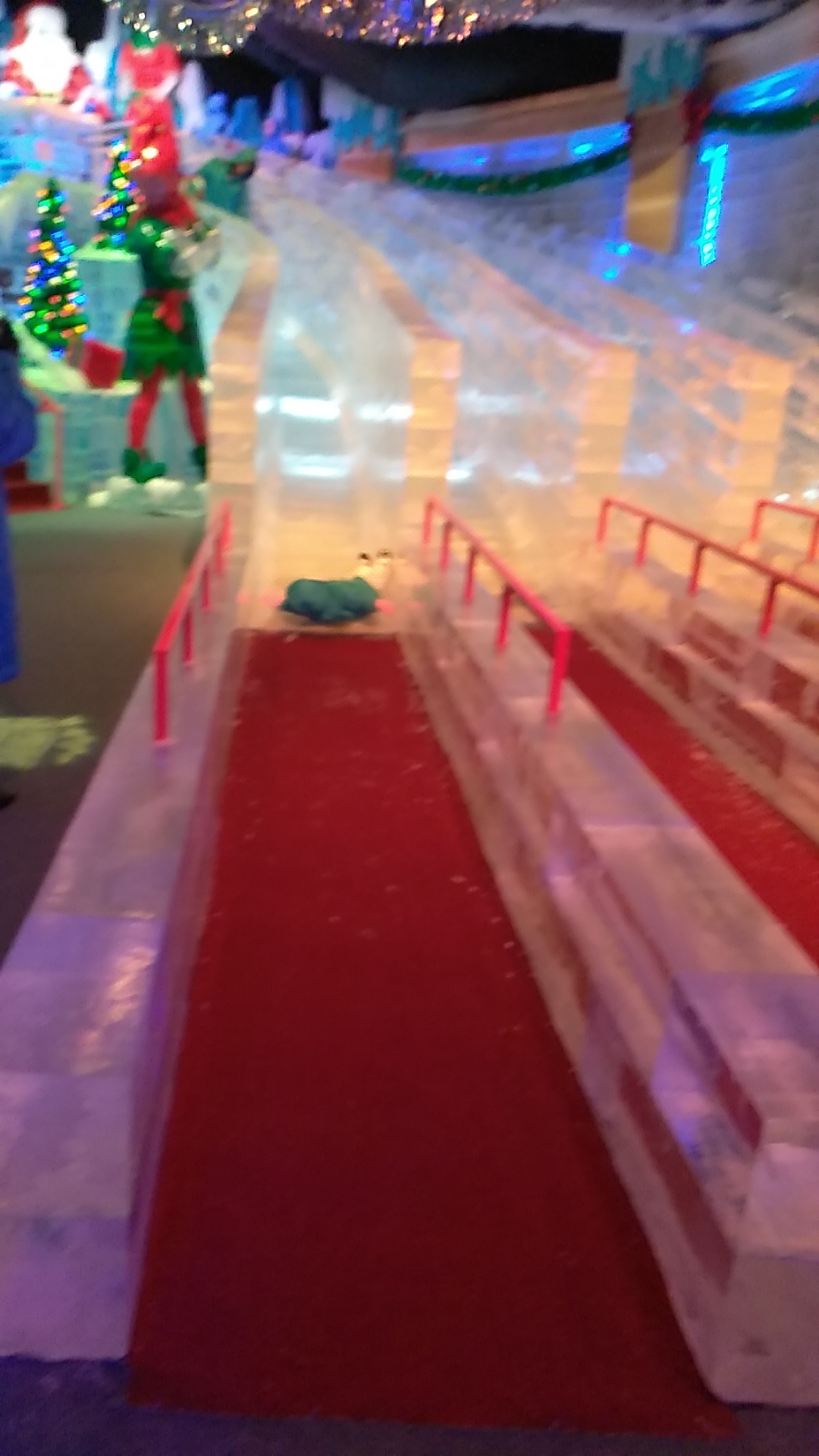 Yes you read that right, Ice is the main ingredient in the creation of this experience. It has tons and tons of Ice and artists come commissioned for this job every year. In order to keep the experience in mint condition for all to enjoy, they do keep the experience at 9F , so it is cold!! Freezing cold! Don’t worry about it – they provide you with a wonderful blue parka to gear up for this man made weather. This has become one of Latin Family Now ‘s al time favorite holiday experiences in Central Florida.